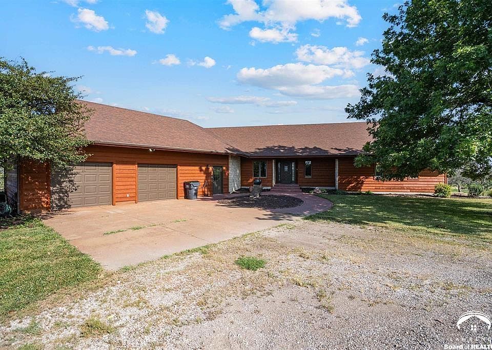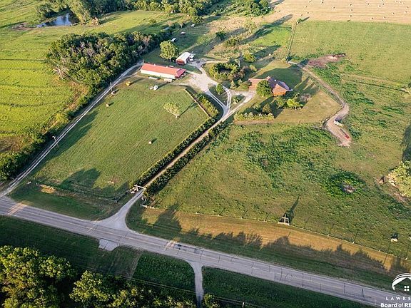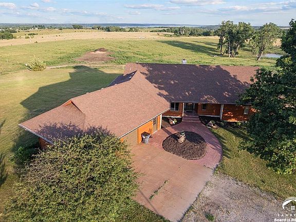 Stunning 18-acre country retreat overlooking Perry Lake with endless potential for an agricultural oasis, Airbnb, or event venue. This 5,000+ sq ft ranch-style home offers 4BR, 3.5BA, vaulted ceilings, 2 stone fireplaces, and a chef’s kitchen with walk-in pantry and island. The luxurious primary suite has a spa-like bath and dual closets. Also, the Walk-out basement features a 2nd kitchen, family room, office/conference space, and ample storage. Outdoor living includes a massive deck, covered patio, and spacious fire pit area perfect for entertaining. Nearly 9,000 sq ft of garage/workshop space includes a 30x60 shop and a 51x120 outbuilding with heated/cooled office and full bath. The property is Zoned Farm & Ag with 5 animal shelters, 4–5 fenced pastures, 6 hydrants, horse arena, and 2 RV hook-ups. Ideal for weddings, retreats, or hobby farming. This is the perfect home to live, work, and host with ease.