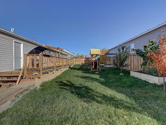 Unbeatable Value! Fully Renovated Manufactured Home on Its Own Land Don't miss out on this exceptionally well-cared-for manufactured home located on a spacious, owned lot in an established Grande Prairie neighborhood Crystal Ridge. Offering an incredible combination of modern updates, functional living space, and an amazing yard, this property is a fantastic value for the price! Over the last five years, this home has undergone extensive, high-quality renovations designed to last for years to come. Move-in with confidence, knowing all the major and cosmetic work has been expertly completed! Key Home & Property Features: Modern Interior Living: Three Bedrooms & 1.5 Baths: A well-designed floor plan features a private master suite with a convenient half-bath at the front and two additional bedrooms and a full bath at the back. Brand New Kitchen: Enjoy a full, modern kitchen complete with all new appliances. Full Renovations: Updates include new flooring, doors, light fixtures, and both bathrooms. Mechanical Peace of Mind: Major upgrades include a new furnace and hot water on demand system. The home has also been recently leveled. Stunning Exterior & Yard: Fully Updated Exterior: The home features a new roof, windows, and siding. Oasis Backyard: Step out into a large, beautiful yard featuring brand new fencing, a covered deck with a heavy-duty Suntuf upgraded polycarbonate roof, and mature landscaping. Gardener's Delight: Enjoy fresh produce from your raised garden beds and several fruit trees, including two apple, three cherry, 2 crab apple and one plum tree. Storage & Parking: The property includes two large sheds on stable foundations and a three-car cement parking pad. A play structure is also included with the sale! Prime Location & Amenities This established neighborhood offers fantastic convenience. You'll be within close proximity to amenities like the Prairie Mall and Superstore, various professional service providers, and a nearby playground for the kids. This home is truly ready for you to move in and enjoy for years to come. Given the extensive, top-to-bottom renovations and ownership of the land, NO CONDO FEES OR LOT RENT, the price is simply unbeatable!