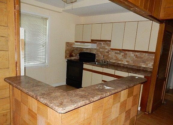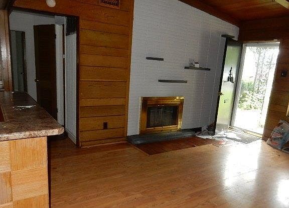 3 bdrm home with fireplace. The living room is kind of rustic with the vaulted wood ceilings and wall. There is a dining nook or you can set up a breakfast bar with stools overlooking the kitchen. There is a tile back splash and ceramic tile floor. Easy access to the rear patio or sit on your covered front porch.