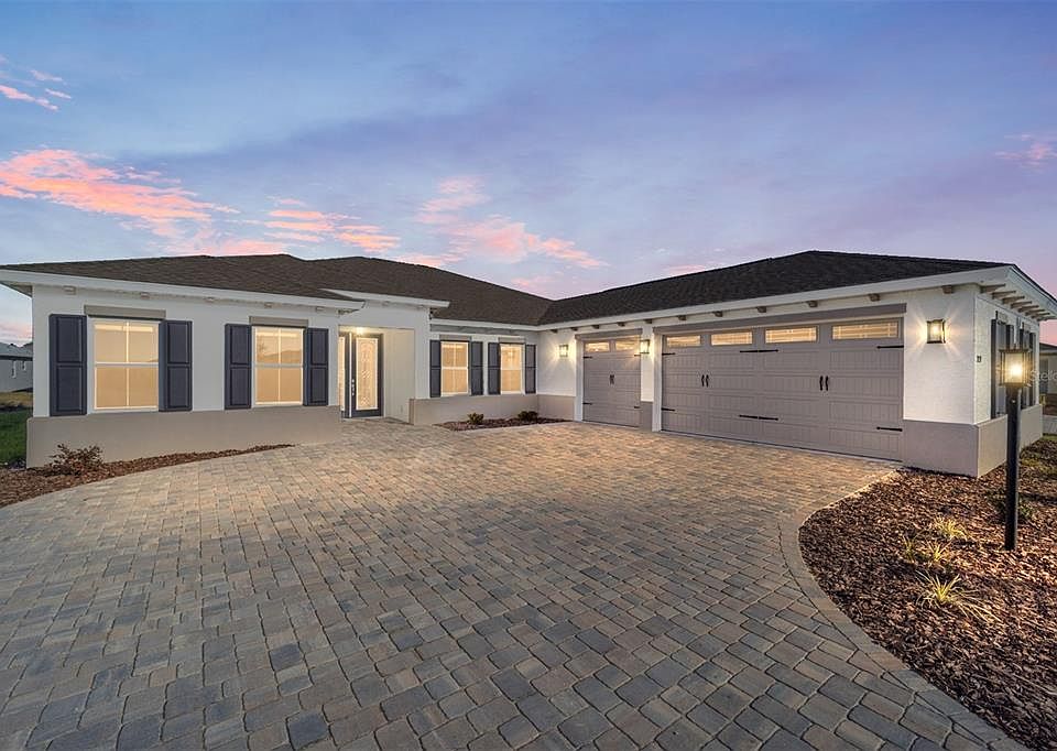 Come see this breath-taking NEW CONSTRUCTION Northampton home, located in Ashford at Candler Hills in On Top of the World! Luxury living would be the best description for this 3 bedroom, 2 bathrooms, a flex room, and a library! This home features beautiful entry double doors, tray ceilings, luxurious vinyl flooring with an open floorplan. The gourmet kitchen is absolutely stunning with Whirlpool stainless steel appliances, premium white staggered kitchen cabinets with crown molding, quartz countertops, and large kitchen island! The sliding glass doors lead to the screened lanai, perfect for relaxing and enjoying the outdoors. The master suite features a tray ceiling, loads of natural lighting, dual walk-in closets, and the stunning en suite. The en suite is equipped with a zero-entry tiled shower with a bench, huge L-shaped dual vanity sink with quartz counters, and a wraparound mirror, providing the ultimate retreat! This home truly has space for all of your needs! Located in Ocala's premier, gated, active 55+ community, loaded with amenities, including golf cart access to 2 shopping centers. Don't wait to schedule your showing because this home will not last long!