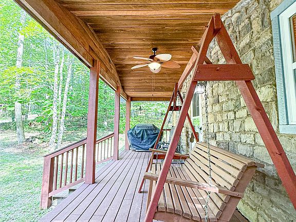 Rustic getaway nestled in Daniel Boone National Forest, just minutes from Cave Run Lake recreation (boating, fishing) and ~25 minutes from Red River Gorge This fully furnished 1,201 sq ft cabin on a 0.47-acre wooded lot features custom hardwood floors, solid wood interior doors, insulated exterior doors, and charming stonework & wood siding. A breathtaking four-season sunroom showcases panoramic mountain views, while new composite decks span the front, side, and back for outdoor enjoyment. Cozy up by the gas fireplace and stay comfortable year-round with new electric baseboard heaters in every room. A large concrete pad overlooking the mountains is ready for a future garage, workshop, or patio. All appliances (refrigerator, range, microwave, washer, dryer) stay, and the cabin is move-in ready. Built to standard residential specs, it has a cabin feel but qualifies for most financing. With high-speed internet, city water, septic, and excellent short-term rental (Airbnb) potential, this private retreat is an ideal permanent home or vacation escape - a true piece of heaven in the heart of Kentucky.