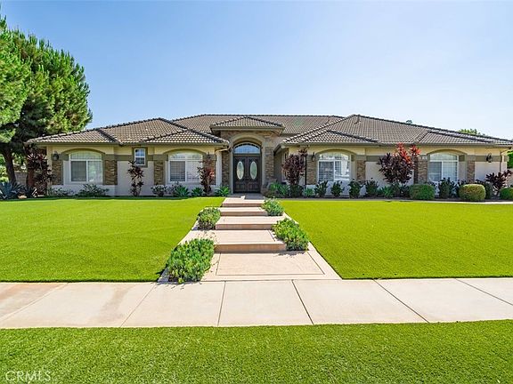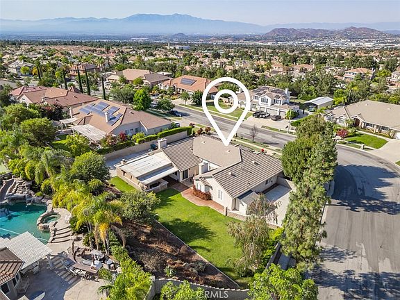This expansive single story home, located in desirable South Corona neighborhood, has all the upgrades and features you're looking for a luxurious and comfortable style of living. Four bedrooms plus an office, three and a half bathrooms, formal living and dining, and expansive kitchen and adjacent family room are spread over nearly 4,000 square feet, located on a half acre lot. Enjoy entertaining at the formal living and dining room with 14-foot coffered ceilings. The chef's kitchen features Thermador appliances: six burner gas range, double ovens, and built-in refrigerator. There's also a wine refrigerator, Miele coffee maker, and walk-in pantry. Decora cabinets with soft-close doors and drawers line the kitchen, topped by gorgeous marble counters. And the prep island has a conveniently located drawer microwave. All rooms are generously sized, notably the family room with space for a pool table and the primary suite with fireplace and sitting area. The primary suite has a spacious walk-in closet and remodeled bath with oversized shower and free standing tub. Stepping outside, you'll have the luxury of a covered outdoor fireplace and kitchen with newer Twin Eagles gas grill, refrigerator, and bar seating which comfortably seats eight. And enjoy the convenience of gated RV parking with upgraded electrical outlet and easily fits a 55-foot RV. Other notable features include custom shutters and wood blinds, a whole-house vacuum system, new water softener and 75-gallon water heater, epoxy flooring and storage cabinets in the garage, and two outdoor sheds. Located just a short distance to award winning schools including Susan B Anthony Elementary and Santiago High School. And Santana Regional Park is just a few blocks away.