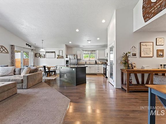 This Kuna home offers prime convenience, being just a minute drive to Meridian Road, which provides easy access to all your essential needs. The appeal begins with the spacious corner lot, featuring ample RV parking and a charming garden area perfect for your outdoor projects and relaxation. Step inside, and you'll be greeted by vaulted ceilings that enhance the sense of space and light. The open floor plan seamlessly connects the living, dining, and kitchen areas, creating an inviting atmosphere ideal for both everyday living and entertaining guests. Whether you're hosting a gathering or enjoying a quiet evening at home, this residence offers comfort and versatility at every turn. Call for a private tour!