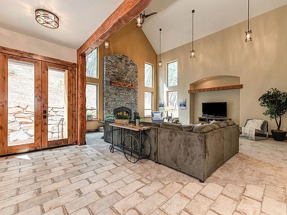 NEW Custom Home a Modern Mountain Retreat! The feeling of a Lake Tahoe. 7 car garage is designed for entertaining. A Chef-Like gourmet kitchen with a large island with 2nd sink. Vaulted ceilings! The main house was completed in 2021 and has never been occupied. The detached 2nd unit has 967 sq. ft. of space upstairs with a full bath, family room and office and a 1200 S.F. garage with a workshop. Home features include 6 inch perimeter walls with 6 inch insulation, Custom hand crafted 10 x 10 Douglas Fir beams and 8ft Knotty Alder doors & trim/cabinets enhances the interior, beautiful stacked stone fireplace in the family room. The master bedroom includes a fireplace, balcony and sitting area, master bath includes custom stone work, oversized stone shower with multiple shower heads & a bath with a view of the hills. The 2.5 acres includes long concrete driveways with large parking areas for vehicles or recreation.