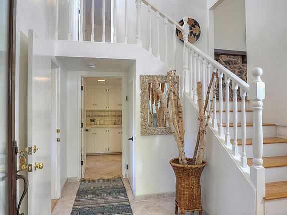 New Look, New Price! Freshly painted and truly move-in ready, this home offers a spacious & flexible floor plan, privacy, and abundant natural light. A welcoming grand entry, soaring ceilings, A/C and owned-Solar are key amenities. The open concept kitchen/bar/dining room has access to a large east-facing deck. The generous primary suite with 2 closets & a spacious bath are on the mid-floor along with the great room; an office/bedroom on the upper floor; and three more bedrooms/den on the entry level with a full bath, wet bar and laundry area - perfect for dual living or a JADU. The 3-car garage includes an additional laundry area and plenty of storage. This home is on a 16,000+ sq. ft lot and enjoys many citrus trees, views and privacy. This is a great value for a great property!