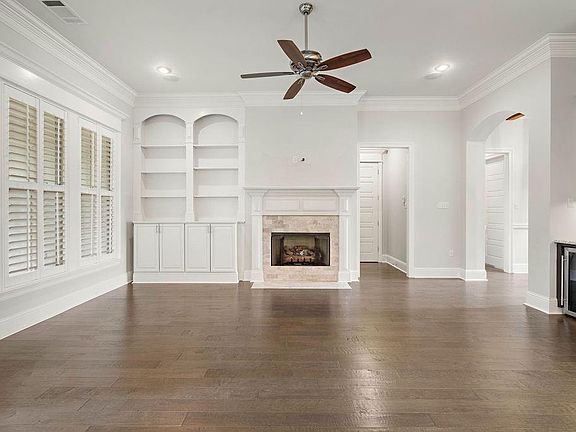 This lovely Garden Home is nestled at the end of a quiet cul-de-sac in gated Natchez Trace, with abundant green space on both sides. Very spacious open living and dining rooms, with fireplace and built-ins. Open kitchen with Sub Zero fridge, 5-burner gas cooktop, natural stone countertops and beautiful tile backsplash, stainless appliances, cabinets with pull-outs, pantry with stone counters, and a wet bar with beverage cooler! Lots of natural light, engineered wood floors, granite countertops in baths, plantation shutters throughout. Peaceful and serene brick patio. Powder room, mudroom, office nook, GENERATOR and 2-car attached garage with storage systems. Enjoy a low-maintenance and carefree lifestyle in this popular subdivision, convenient to everything. Meticulously maintained and stucco refurbished in 2023! Move-in ready, just unpack your bags. Gated neighborhood has community pool. Landscaping and sprinkler system maintained by HOA!