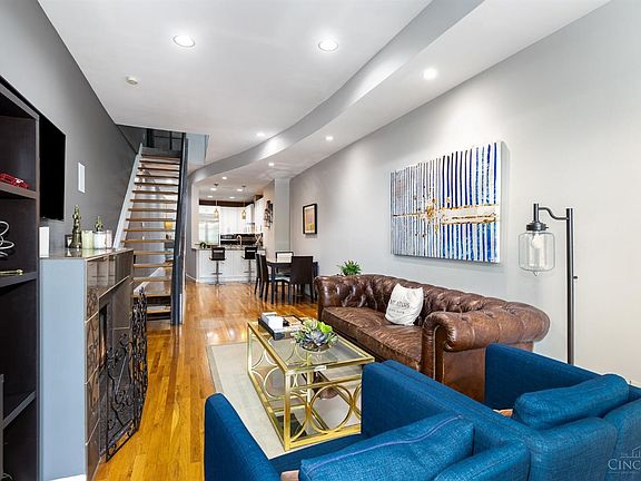 This beautiful Mt Adams home features 2 bedrooms, 2.5 baths, upscale finishes and well appointed details. Enjoy the gourmet kitchen, great master living level, decks on every floor and a dramatic Trex roof deck with hot tub and breathtaking views of the river, Kentucky and Mt Adams. The tandem garage has parking space for 2 cars along with maintenance free turf grass in the backyard.
