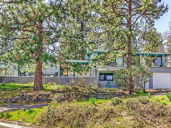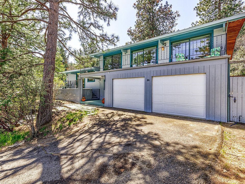 Be enchanted! This wonderful home sits on a corner lot in a beautiful neighborhood surrounded by mature trees, sweeping views of the mountains from all rooms and 2 decks. Trails are nearby. Inside, you'll find elements of true midcentury design: vaulted ceilings, large windows and a brick fireplace separating the living & dining rooms. Enjoy views of the pool and waterfalls out the oversized picture windows. The remodeled kitchen features beautiful wood cabinets, quartz counters & a large island. A remodeled powder room is adjacent. Up a level, are three bedrooms, all with vaulted ceilings, deck access & views. Primary suite has lots of windows & a walk-in closet. Downstairs features a bonus room, laundry room, garage & workshop. House is gently warmed by radiant gas units, augmented by a mini-split for AC. The terraced backyard includes garden beds, fruit trees, a sweet shed and in-ground saltwater pool with two waterfalls and space for entertaining. Don't miss this great opportunity!