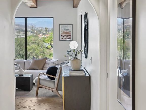 Don’t Miss This Rare Opportunity! This spectacular, solar-powered, 4.4-acre gated horse property blends equestrian amenities, luxurious living, and privacy all just moments from downtown Fallbrook. Enjoy panoramic vistas from the expansive deck, patio, and nearly every room in the home. The main residence offers 3 bedrooms and 2 bathrooms with a warm, inviting floor plan. The living room’s picture windows and cozy fireplace create a tranquil gathering space, while the chef’s kitchen - featuring custom cabinetry, high-end appliances, and an eat-in dining nook - creates a cozy space for easy entertaining. Upstairs, the primary suite is a true sanctuary with a private fireplace, expansive walk-in closet, spa-inspired bath, and a large deck overlooking rolling hills. For horse lovers, this property is fully equipped with a well-designed barn featuring four stalls (including a foaling stall), tack room, wash rack, and spacious arena. Three separate paddocks allow horses to roam, and thick rubber mats, plus hot and cold water in the barn, make daily care convenient. An attached one-bedroom studio with bath and kitchen provides ideal accommodations for guests, staff, or even a private office. With 33 owned solar panels (paid in full), this estate offers sustainability and significant savings. Additional highlights include two storage sheds, a spacious RV carport, and thoughtful design that ensures comfort and functionality at every turn. Whether you’re relaxing fireside, hosting guests, or tending to your horses, this property delivers the perfect balance of modern convenience and rural tranquility. All of this is located in a highly desirable, peaceful setting - just a short drive or stroll to Fallbrook’s shops, dining, and local attractions. Properties like this don’t come along often. Schedule your tour today and experience the privacy, lifestyle, and value waiting for you!