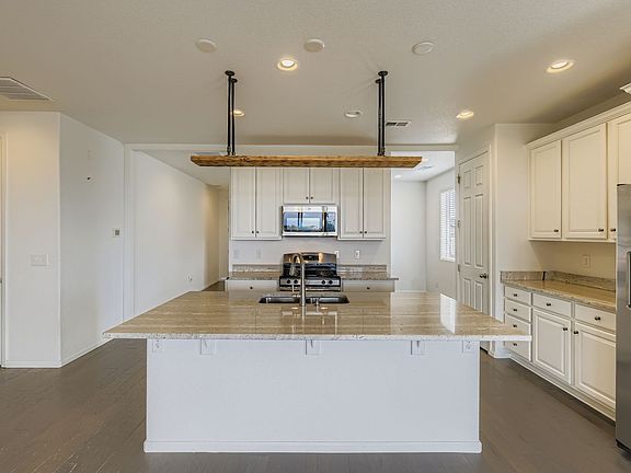 Your bright and modern kitchen includes 42" upper cabinets, granite countertops, stainless steel appliances, a large center island, and a generously sized walk-in pantry.