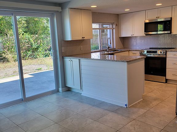 This property is pending. This 2 bedroom, 2 bathroom, 1 car garage house has been completely remodeled. This contemporary style home offers an updated kitchen with new stainless steel appliances, stone countertops and shaker cabinets. The primary bedroom is spacious with a walk in closet and new vinyl plant flooring and features an ensuite bathroom with hand laid tile and updated fixtures. The second bedroom has new flooring and a spacious closet. The secondary bath has all new fixtures. Additional features include an impact resistant slider door to the backyard, a smart washer & dryer, an energy efficient full size hot water heater and a new A/C. The backyard is completely contained with a 6 foot privacy fence. Utilities are the responsibility of the tenant. A non-refundable pet deposit is required for each pet (if applicable). No smoking is allowed on the property. All adults over the age of 18 must complete an application (fee) and must pass a financial and criminal background check. The applicant's income must be at least 3 times the rent. If approved, first and last months rent and security deposit due when signing the lease. A non-refundable pet deposit is required for each pet (if applicable). No smoking is allowed on the property. All adults over the age of 18 must complete an application (fee) and must pass a financial and criminal background check. The applicant's income must be at least 3 times the rent. If approved, first and last months rent and security deposit due when signing the lease.