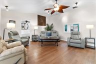 - Cathedral Ceiling(s), Furnished, Laminate Counters, Primary Suite, Split Bedrooms, Tub Shower, Updated Kitchen, Walk-In Closet(s), Window Treatments, Sliding Glass Door(s)