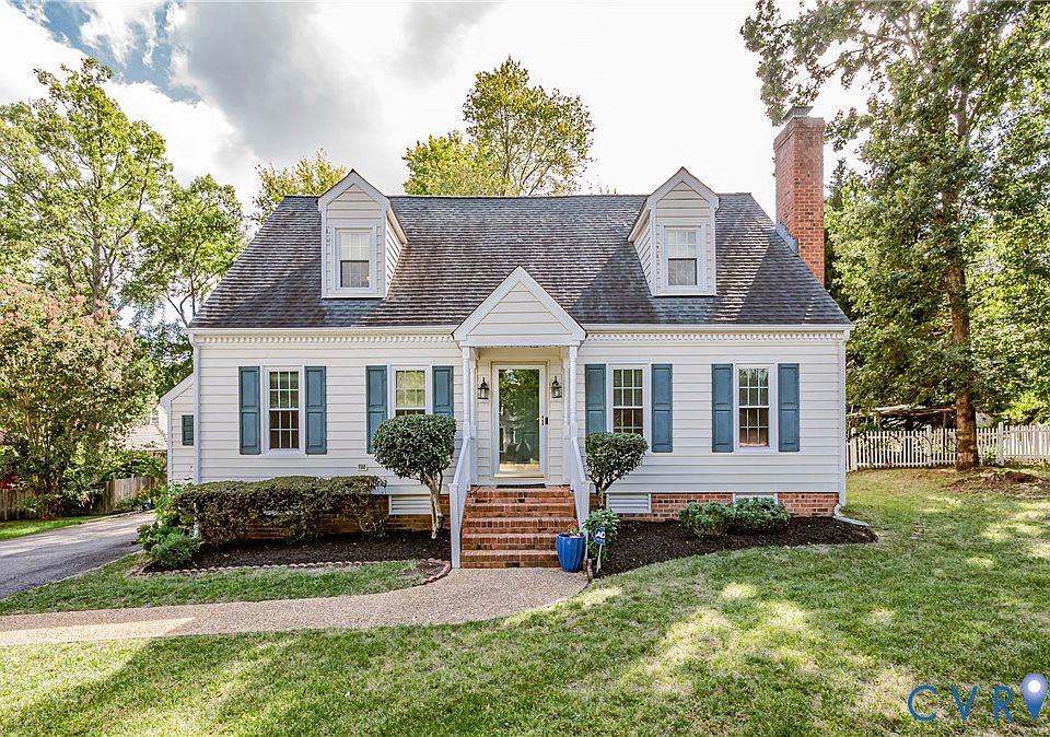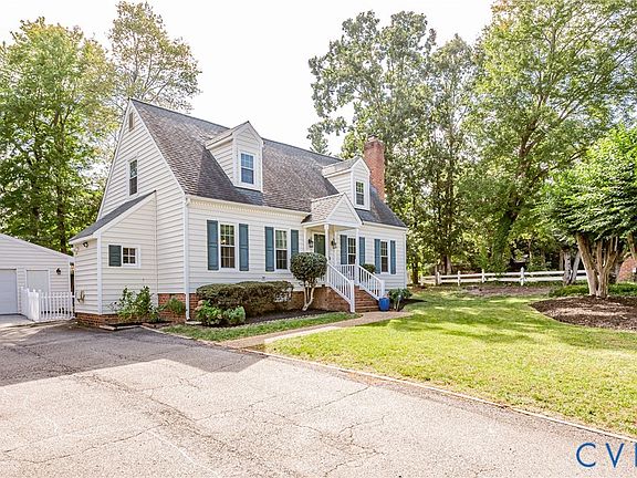 Charming and updated Cape Cod on a large lot in a fantastic location close to everything! North facing cape cod with a bedroom down stairs, 2 car garage nice big lot updated , freshly painted. Screened porch, great location close to Everything. Within minutes of access to Interstate 295 & 64. The seamless flow connects the kitchen to the living room, dining area, and a charming sunroom, perfect for entertaining or relaxing. Upstairs, you'll find two spacious bedrooms and a full bathroom. The lower level boasts a cozy family room with a fireplace, one additional bedroom, a second fully renovated bathroom. Step outside to enjoy a large fenced rear yard ideal for outdoor activities.