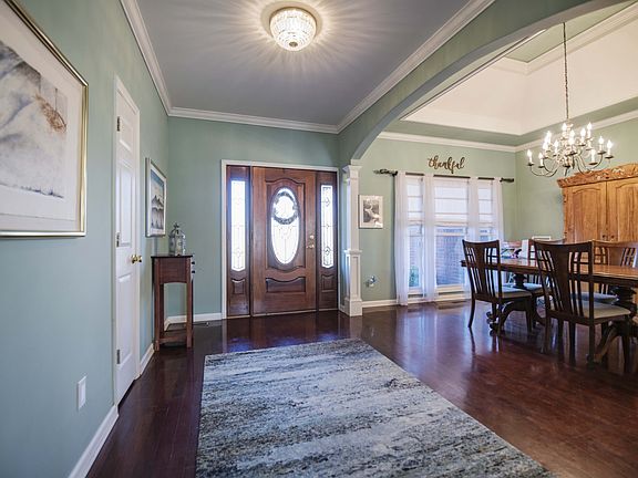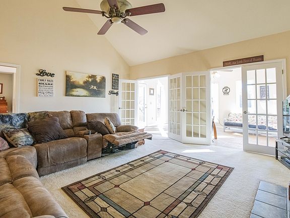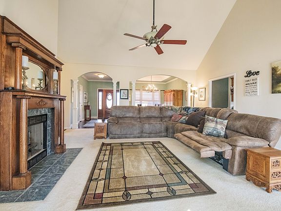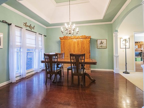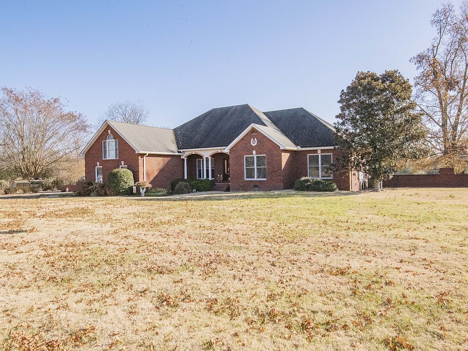 Country living! This 3BR/2.5BA home is situated on 7.6 acres and features an open concept floor plan with designer paint tones, living room with fireplace, formal dining room with trey ceiling, eat-in kitchen with fireplace, custom island and bay windows, sunroom, all bedrooms on main level, bonus room up, large master suite with bay windows, trey ceiling and private bathroom, above ground pool and fenced back yard! This home is perfect for entertaining! Bring on the goats and donkeys!
