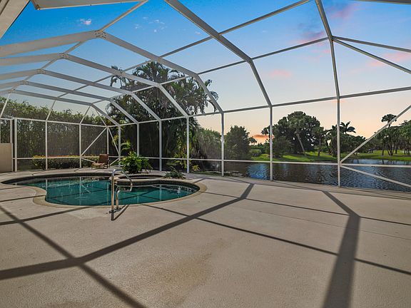 Bermuda-style home tucked within the peaceful Spray Cottages of Breakers West. Just 20 minutes from Palm Beach and a short drive to Wellington's premier equestrian venues, including the NPC and WEF. Ideally positioned on a quiet cul-de-sac with panoramic lake and Mayacoo Lakes Golf Course views, this residence offers high ceilings, impact glass windows, plantation shutters, and an updated kitchen with stainless appliances, granite counters, and a charming window over the sink. The first-floor primary suite includes dual vanities, a soaking tub, separate shower, and generous closets. Enjoy a screened pool, spa, and covered patio surrounded by tropical landscaping. Optional memberships available at Breakers West Country Club and Mayacoo Lakes Country Club.