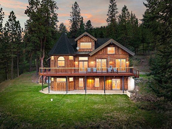 Nestled in the picturesque Big Flat area, this one-of-a-kind 4 bedroom + office, 3.5-bathroom residence exudes comfort & style with an open floor plan graced with hardwood & tile flooring throughout the main & lower levels. As you step inside, you're greeted by a warm & inviting living room with soaring vaulted ceilings, an entertainment bar, & tall glass doors that frame breathtaking views to the East. The formal dining room with pocket doors is adjacent to the well-designed kitchen featuring all new appliances, polished concrete countertops & walk-in pantry, catering to the culinary enthusiast. An informal dining area, dedicated office, spacious mudroom with utility sink, & half bathroom completes this level's exceptional layout. Step outside onto the wrap-around deck, where sweeping vistas of the Missoula valley & glimpses of the Clark Fork River unfold before you. Ascend to the upper level, where a loft, additional bedroom, bath, & bonus room in the turret await your creativity. The lower level offers a haven for relaxation and entertainment, featuring a family room, two bedrooms, a full bath, and an owner's suite boasting a jetted tub and a beautifully tiled shower. Step out onto the patio from the walkout lower level, where you'll find a grassy lawn with an underground irrigation system & an enclosed garden area for those who wish to cultivate their own produce. The wiring is already in place for a hot tub, adding to the outdoor indulgences. Live comfortably year-roundwith radiant floor heat on the main & lower level, & 5 Mitsubishi mini splits throughout the home. Furthermore, the double-car garage is exceptionally deep, with an additional work area and a spacious room above, perfect for storage or conversion into a guest house. This meticulously maintained home offers ample storage throughout, ensuring every belonging has its rightful place. For a showing call Beckie Peterson 406-829-6003, Diane Beck 406-360-7654, or your real estate professional.