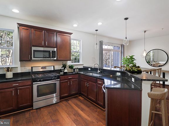 Don’t miss this stunning 3-bed, 3.5-bath townhome nestled within the Emerson community backing onto a serene wooded area. Enter into gleaming hardwood floors, fresh paint, and an abundance of natural light flowing throughout the main level. The chef’s kitchen is a standout feature, boasting beautiful wooded cabinetry, two-tier granite countertops, stainless steel appliances, recessed lighting, and an adjacent dining area with tranquil tree-lined views. Step outside the sliding glass door to the upgraded "maintenance-free" composite deck (2013), perfect for enjoying your morning coffee. The spacious living room and conveniently located powder room is the ideal space for entertaining guests or a movie night in. When ready to unwind, head upstairs to the owner's suite featuring ample closet space and a spa-like ensuite bath with dual sink vanity, stand-up shower and garden tub. Two additional bedrooms, a full bath and laundry room, complete the upper level. The large lower level multi-purpose room with walkout access, cozy gas fireplace, extra storage space, and beautifully renovated full bath with a custom-tiled walk-in shower is the perfect layout for an in-law suite, au pair bedroom, or in-home office with a rec room. Step outside to the outdoor patio and enjoy the wooded area with no rear neighbors. Attached 2 car garage with driveway offers off-street parking for up to 4 cars, plus ample guest parking throughout community. Air handler on the second level replaced in 2021! Enjoy community amenities such as a clubhouse, pool, tennis courts, playground, and more! Ideally located within 2 miles of Savage Park, outdoor enthusiasts can enjoy several sports fields including tennis courts, basketball courts, baseball fields, volleyball, a tot lot, and the scenic Patuxent Branch Trail. Just minutes to BWI, MARC, Ft. Meade, and easy access to I-95 and Rt 32.