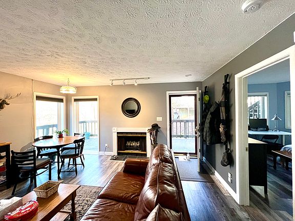 The unit features a screened-in back deck with peaceful lake views, a cozy living area with a wood-burning fireplace, updated flooring, and a fully remodeled kitchen. With an attached garage, modern furnishings, and a functional layout, it's move-in ready for your short-term stay.