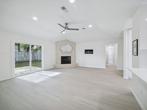 9742 Shell Rock: +/-1,643 S/F, 3 B/R, 2 F/B single story in La Porte's Fairmont Park West. Recently completed (11-2025) extensive interior updates/upgrades include: Vinyl plank floor, fresh paint & updated LED lighting throughout. Kitchen has soft close doors & drawers, 42" cabinets, oversize u/m S/S sink, 5-burner smooth surface range, slab quartz counter-tops w/custom tile backsplash & S/S & glass finish venthood. Primary B/R features new Low-E slider door to backyard, vaulted ceiling & new c-fan. En-suite bath updates inc. new slab quartz topped vanity w/undermount sink, custom tile-surround shower w/frameless glass, LED backlighted mirror & large W/I closet w/custom shelving & drawer storage. Full bath 2: tub/shower combo w/custom tile surround, new slab quartz topped vanity w/undermount sink & LED backlighted mirror. Family: vaulted ceiling, corner F/P, new c-fan & new Low-E slider door to backyard w/wood deck. Minutes to toll-way & Hwy 225.