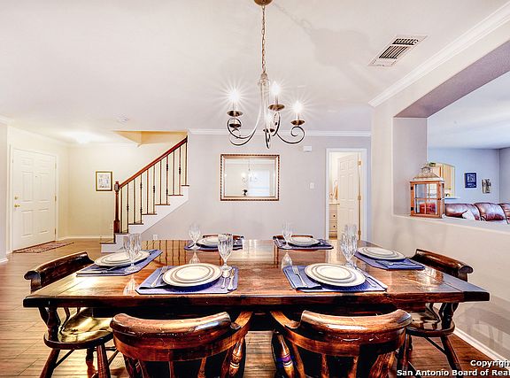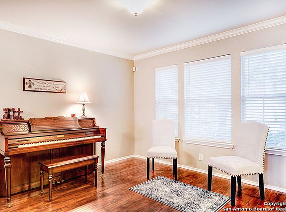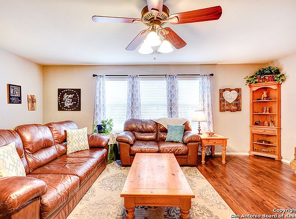 Pride of ownership is evident in this beautiful Helotes home! Step inside & fall in love w/gorgeous wood laminate flooring & the custom iron spindled stair rail. Spacious master suite w/luxurious walk-in shower. Game room has custom built-in shelving & storage unit. Open plan offers flexibility & functionality w/ 3 living areas, island kitchen & large secondary bedrooms. Expansive rear patio & yard provide plenty of room to play & entertain! *Located in cul-de-sac w/no rear neighbor & nearly 1/4 acre!