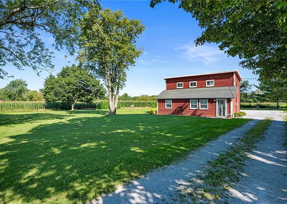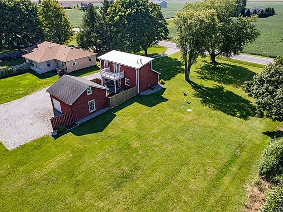 Eye catching Country oasis! From the moment you pull in, be prepared to fall in love! 2BD, 2 BA, 1024 sf, on .69 acre lot with crop views front and back; yet, so convenient to shopping and more! Upper Master with freshly painted Balcony Deck to enjoy the beautiful sunrise, sunsets and stars! New vinyl plank flooring in updated Kitchen, Bathrooms and Laundry Room! Dining Room with laminate floors and pellet stove stays for enjoyment and optional heating source, w/ patio doors leading to a privacy fenced courtyard & detached 400sf 1 car Garage with upper loft and workshop! Plenty of room for storage and room to grow! Endless possibilities! Don’t miss this one! Immediate possession at closing! Metal shed and chicken coupe stay!