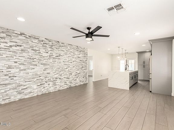Welcome to this beautifully renovated 3-bedroom, 2-bath home! Renovated in 2021, this stunning home offers a stylish kitchen with custom cabinets, quartz countertops, a spacious island, and stainless steel appliances. Bathrooms feature designer tile and modern finishes, while elegant tile flooring flows throughout. Enjoy accent stone walls in the living room, bathroom, and back porch. The backyard is perfect for entertaining with a large covered patio, travertine tile, and synthetic grass. With a newer HVAC system and fresh interior paint, this move-in-ready home offers comfort, style, and peace of mind. Don't miss it!