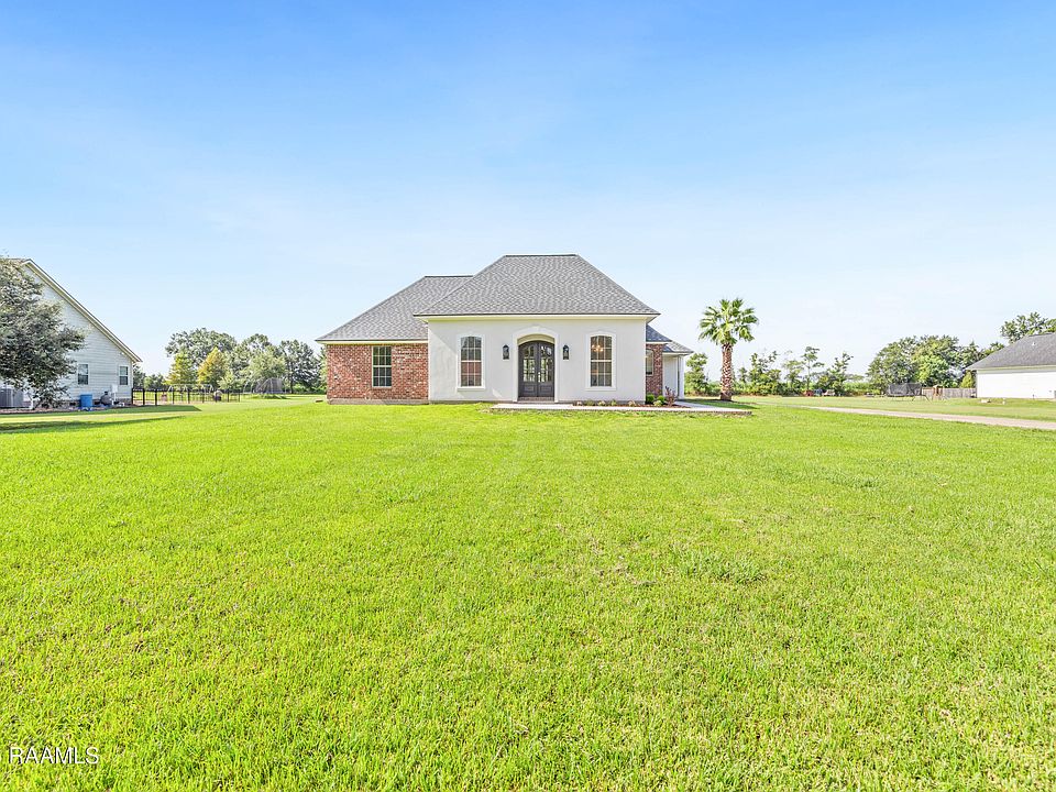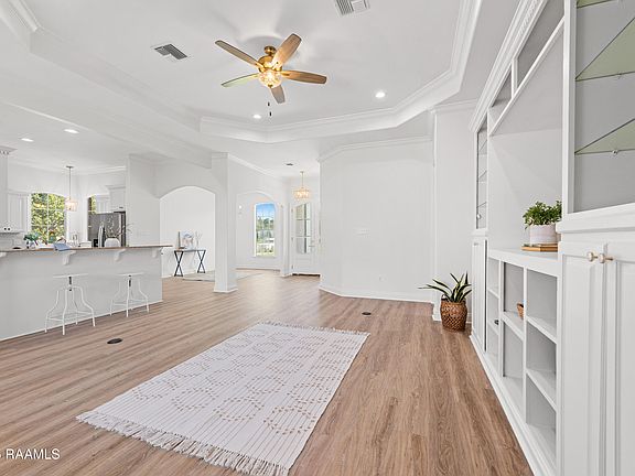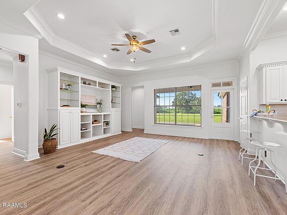 Welcome to the perfect blend of thoughtful design and understated elegance. With over 1800 square feet of truly usable space has been expertly crafted with intention and style. Situated on 1.25 acres with no backyard neighbors, this home offers a rare sense of privacy and serenity, framed by expansive bayou-front views that you can enjoy right from the kitchen sink. Inside, every detail has been carefully curated. The engineered wood laminate flooring throughout not only exudes warmth and sophistication, but also comes with a lifetime warranty for both wear and water resistance~ luxury without the maintenance. Rounded corners soften the flow of the home, and designer-selected lighting, mirrors, and fixtures add a touch of glam to every room.The living space is open yet cozy, with floor outlets thoughtfully placed to give you complete freedom in furniture placement. Tucked just off the living room is a flexible office or bonus space, perfect for a work-from-home setup, playroom, or additional storage.The kitchen boasts brand new appliances and modern finishes The primary suite is a true retreat, offering dual vanities, ample closet space, and a showstopping oversized shower that feels like it belongs in a boutique hotel.Other highlights include a new roof, a new AC system, and a new garage motor, all replaced in 2025. The backyard is generous and lush, providing room to relax, entertain, or expand. And the location is the definition of ideal, it's only minutes from the Youngsville Sports Complex and north of Highway 14.This is where comfort meets style. Where smart upgrades meet designer touches. Where affordable luxury becomes your everyday. Schedule your showing today!