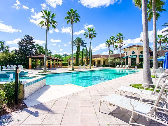 This exquisite end-unit condo, the finest in Il Villagio, boasts a full renovation with premium luxury vinyl plank flooring, white shaker cabinets, and top-quality quartz countertops. The large screened balcony overlooks a serene pond and fountain. Enjoy two spacious primary suites, a first-floor laundry, and resort-style amenities including a pool, fitness center, and tennis courts. Just minutes from Tinseltown and St. Johns Town Center, with easy access to downtown Jacksonville and beaches, it blends tranquility with urban convenience. Don't miss this meticulously maintained, modern gem in a sought-after gated community. Schedule your showing today!