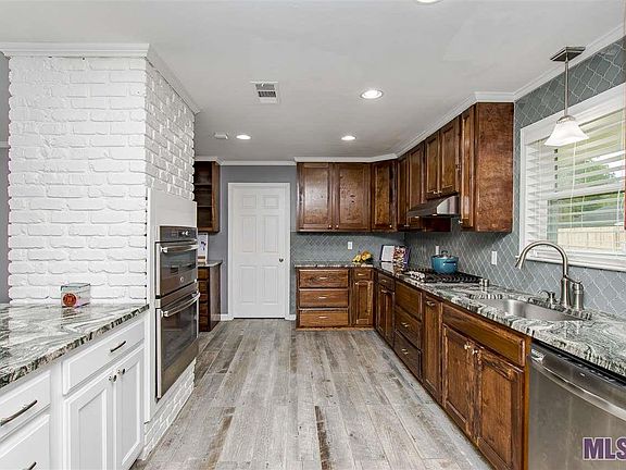Completely updated 3 bedrooms, 2.5 bath home on over 1 acre located in Green Acres! This home features an open floor plan with a formal dining room, living room, separate den, and computer nook. No carpet! The kitchen boasts stained and painted custom cabinets, slab granite countertops with glass tile backsplash, stainless steel appliances, gas cooktop, built in microwave and wall oven, and a large peninsula with breakfast bar. The kitchen and dining rooms are open to the living room, which a fireplace with brick surround and hearth, crown molding, and access to the patio. The spacious master bedroom features an en suite bath with dual vanities, slab granite countertops, framed mirrors, and soaking tub and shower with custom tile surround. Guest bath also features dual vanities with slab granite countertops. Wide-plank wood flooring throughout all living areas and bedrooms, with porcelain tile in baths and laundry. The private backyard includes covered and open patio areas and lots of green space. Detached garage at the end of the driveway is 400 square feet and not included in living or total area. Beautiful mature oak tree in the front yard. This home will not last long! Call me today to schedule your private tour!