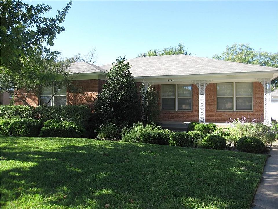 Beautiful East Dallas Home. Gleaming hardwood floors. Updated eat in kitchen complete with granite countertops and stainless steel appliances. Flexible floor plan with two living areas. One living area would be great for play room, office, gym or tv room. Totally remodeled master bath. This property enjoys an oversized garage with work bench and storage room. Lushly landscaped. Fully sprinklered yard.