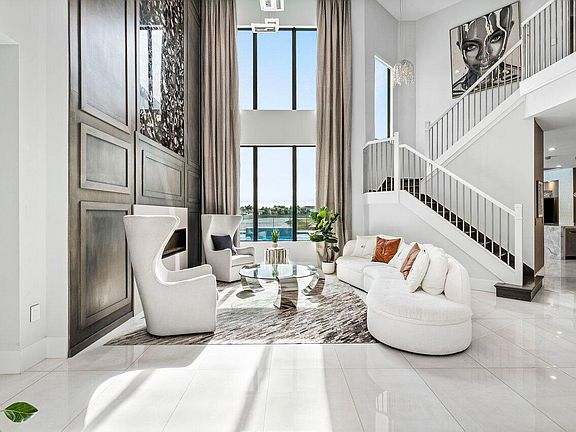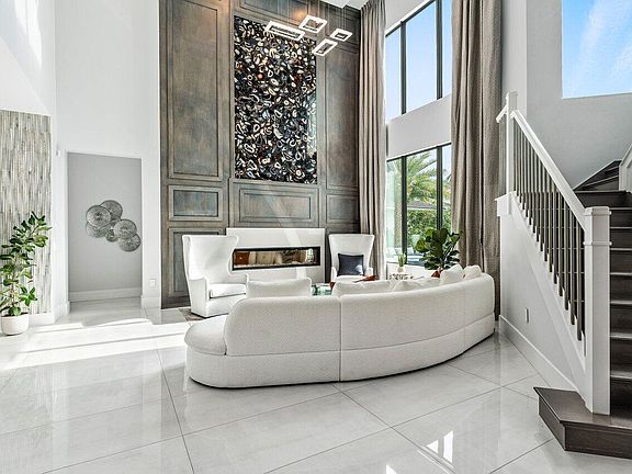 Welcome to Tranquility, a masterfully enhanced estate set on one of the most coveted long lake view lots within the prestigious Seven Bridges community. This exceptional 7-bedroom, 7.5-bathroom residence captivates with sweeping lake vistas from nearly every room, blending refined elegance with resort-inspired living.The tranquil outdoor retreat is thoughtfully designed for both relaxation and entertaining, featuring a temperature-controlled saltwater pool and spa, app-controlled ambient lighting and water features, a grand pergola, private sauna, and a fully equipped outdoor kitchen. Indoors, the home's sophisticated layout includes dual primary suites and two laundry rooms, one conveniently located on each level.A statement-making, backlit natural agate stone graces the custom fireplace in the formal great room, while soaring upgraded ceilings, designer light fixtures, and pre-wiring for integrated sound and security systems elevate the home's luxurious atmosphere. Additional highlights include a bespoke glass front entry, a circular driveway, dual Tesla chargers, a 2025-installed whole-house generator, a professional-grade Wolf gas range with double ovens, Sub-Zero refrigeration, and impact-resistant glass throughout.
