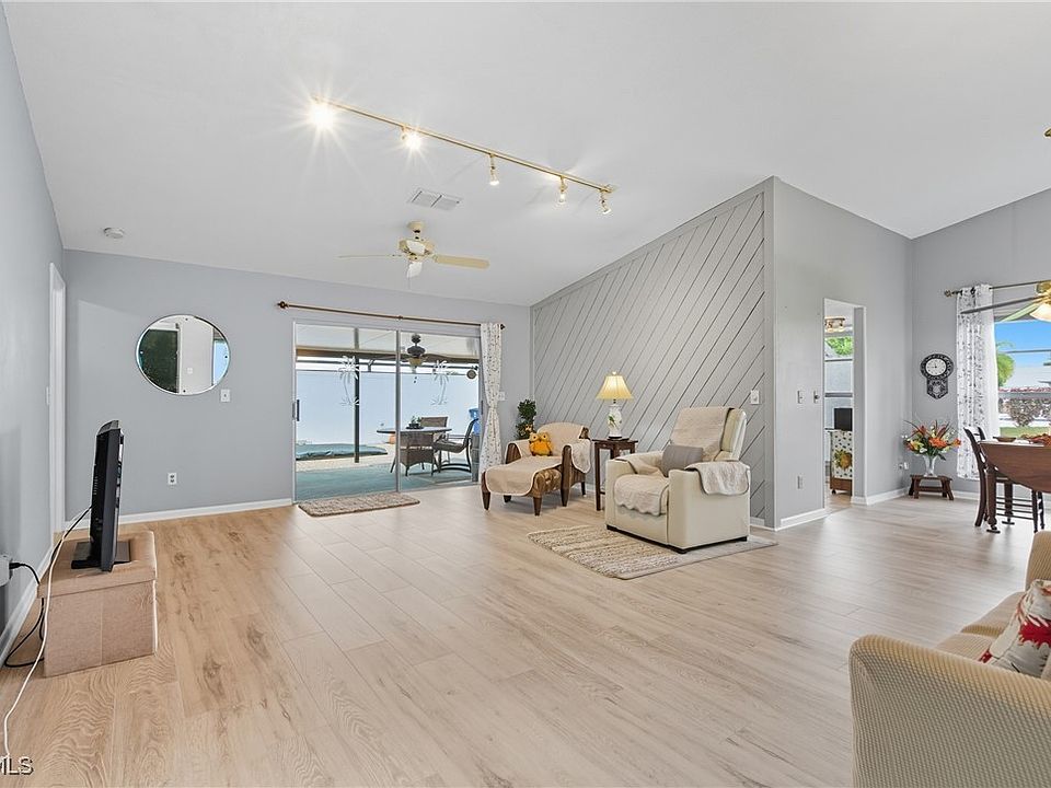Welcome to your large spacious home in Woodcrest Village. This fabulous Pet Friendly 55 + community is centrally located in Lehigh Acres. Shopping, Post Office, and restaurants are nearby. With nearly 1900 sq ft of living space, you will have plenty of room for relaxing, crafting, exercising, or enjoying a great book. Step out back into your private oasis. The large screened-in lanai offers both a covered and uncovered area. Perfect for enjoying a peaceful cup of morning coffee or an evening cocktail without the summertime pests. Inside you will find 3 spacious bedrooms, upgraded guest bath, both a living and family room, and a beautiful dining room overlooking the community pool. Storage is not an issue with 2 sheds, a tool room and an indoor laundry. Just off the living room, is a beautiful outdoor atrium. Great for tropical Florida flowers, butterfly garden, or a lovely sitting area. The kitchen features a gas cooktop, gas wall oven, large pantry and ample counterspace. A rare find in this community... This home was the model home when the community was built so the garage has been converted to extra living space. Best of all, Seller is paying for a 1 yr Home Warranty for the new Buyer! Whether you are downsizing or just ready for a lifestyle upgrade, this home offers comfort, convenience and a welcoming community vibe. Come see it for yourself!