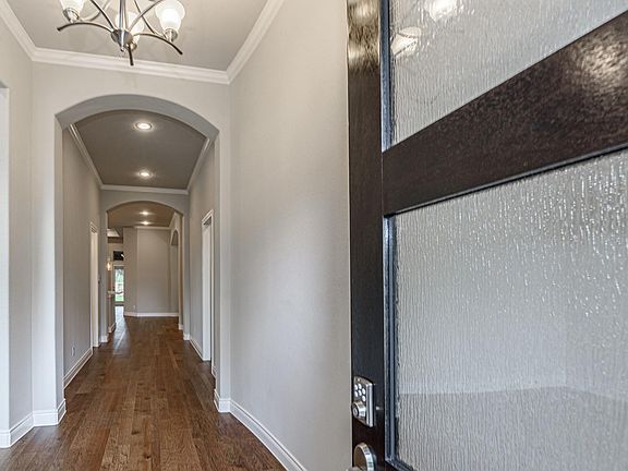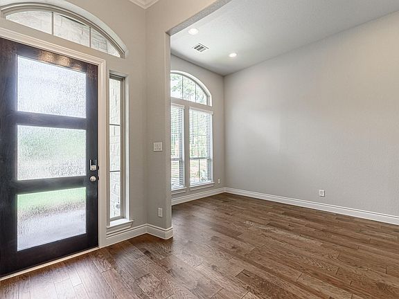 1-story home features a 3 car garage and an elegant oval entry with 13' ceilings that opens to formal study. The kitchen is central to the home and open to the dining room, breakfast room and family room. It features a large island, designer finishes, abundant cabinetry, KitchenAid appliances including a 36” gas cooktop. An open family room features a 14' ceiling with fireplace and a large 3 panel sliding glass door. Master bath includes a freestanding tub, separate shower and His and Hers vanities. Outside features a stucco elevation, a 30’ covered patio and full yard sprinkler system.