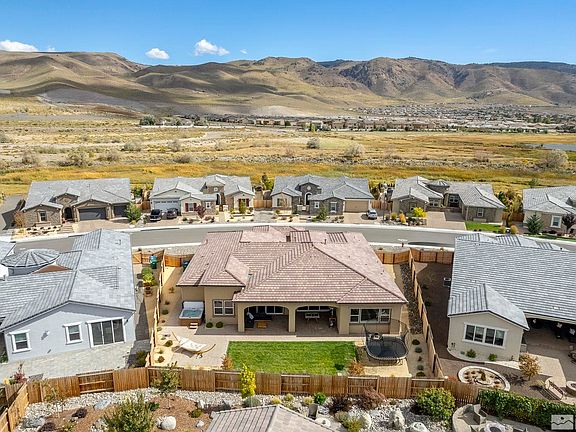 Seller to contribute $10,000 towards buyers recurring and non-recurring closing costs. Exquisite home, nestled in the desirable gated community of Sorrento Trails in Bella Vista Ranch boasts pride of ownership the moment you step inside! Built to entertain and impress, this home features over $250K in custom builder upgrades throughout. The immaculate kitchen is a chef’s paradise, featuring custom modern cabinets with soft close hinges, quartz countertops, subway tile backsplash and upgraded appliances., Additional features of the kitchen include: Upgraded Kitchen Aid appliances, double ovens, an oversized island, & eat-in nook. Stainless steel farm sink, built-in microwave, beverage fridge, waterfall countertop on the island, custom lighting, oversized walk-in pantry and butler’s pantry with upper and lower cabinets and a prep sink. The luxury laminate flooring throughout the main living areas enhances the warmth tones throughout. Your oversized great room features high ceilings with an abundance of natural light and two large sliding glass doors, one being a three-panel sliding door, that leads you to your covered patio; perfect for indoor/outdoor entertainment. The serenity of the backyard is indescribable, with $55K in custom landscaping and stunning views of Mount Rose. Enjoy many family gatherings under the covered patio, next to the hot tub/spa! Don’t miss the wrap around paver patios! At the end of a long day, you can retreat into your primary suite, featuring a beautiful en-suite boasting an oversized walk-through shower with custom tile finishes, three showerheads including the rainfall, and dual benches; not to mention a standalone soaker tub, dual vanities, large walk-in closet and linen closet. Three additional junior suites with their own full bathroom with custom finishings and large walk-in closets; not to mention an additional bonus room perfect for multi-use flex space. Additional ½ bath perfectly situated off the great room, with custom marble tile. The separate laundry room includes upper and lower cabinets, for additional storage and a quartz countertop with a built-in sink. An oversized 3-car garage providing plenty of space for all your tools and recreational toys. Additional features throughout the home, including: $10K in custom window coverings throughout the home and garage, custom light fixtures in all main living spaces, ceiling fans in all bedrooms, soft close cabinets throughout the home and so much more! Ideal location, as you are moments away from walking trails and paths, wetlands, City of Reno Cyan Park, schools, shopping, dining and more! Close to Veterans Parkways and the Southeast Connector making any commute easily accessible! Sorrento Trails at Bella Vista residents have the luxury of enjoying the community clubhouse, pool, spa and fitness center year-round!