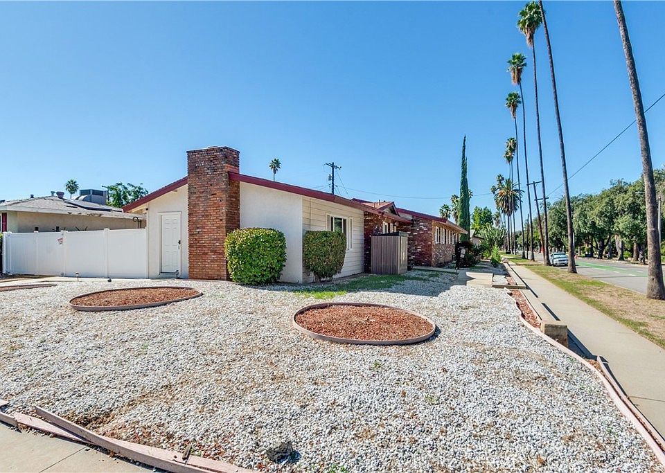 Beautiful ranch style home features 4 bedrooms, 2 baths and nearly 1700 ft of living space on a large corner 9940 sq ft lot. All new flooring throughout the house, kitchen countertops, and completely redone bathrooms in 2023. Central Heating and Air replaced in 2016. New water heater installed. New water filtration system installed. Double Paned windows, and vinyl fencing. This home has a huge family entertaining room, perfect for hosting and entertaining. Living room and family room both have brick fireplaces. Plenty of room for RV parking. Two car attached garage, with a laundry hook-up. Located in the incredibly desirable South Redlands area, a short walk to downtown! Centrally located and close to everything. Buyer to verify actual square footage and permits of home as it has a room addition and an added attached garage. Possibility for an ADU with side street enerance.