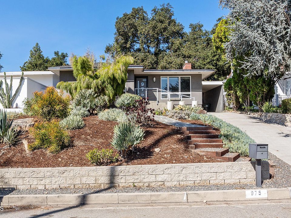 Nestled at the base of the foothills in Altadena, this Mid-Century Modern is fantastic! Thoughtfully updated for today's lifestyle, this house has it all! Sophisticated and friendly are the words that come to mind when you open the door. The living room windows offer an amazing city lights view, and on a clear day, all the way to the ocean! The newly remodeled kitchen is beautiful and loaded with storage space for all your culinary tools allowing you to create a feast for two or twenty! Walking through the dining area and the sliding doors to the backyard, it becomes clear all the opportunities the outdoor space offers - hammock area, reading nook, play area etc... so many spaces to live outside - such easy living! The main bedroom has a beautiful European-style shower with separate sink and wonderful windows for that City view. The hall bath has a fantastic skylight making this a bright and cheery space. Don't miss the huge hall closet with that fantastic red door. Improvements include upgraded electrical box, pex throughout, whole house fan, tankless water heater, permitted third bedroom, drip water system in backyard. You will love this place!