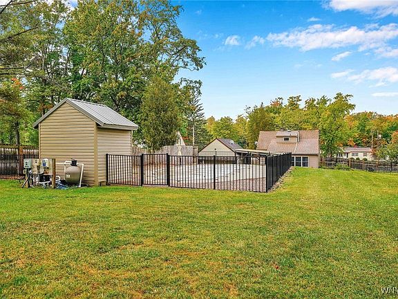 Welcome to 975 Exchange st Alden NY. This beautifully updated home features large kitchen addition ideal for entertaining. First floor primary and updated bathroom. The basement is partially finished with wood burner and entertainment center. Outside off the kitchen is a patio ideal for relaxing or guests. Just beyond that is an in ground heated salt water pool that is overlooked by an orchard of fruit trees and bushes including cherry, apple, blueberry and blackberry. The 2.5 car garage is heated and includes a 60 gallon 2 stage air compressor. Out back is a 16x24 cold storage barn. Other features include 10 year old roof, drain tile behind the house, new trap and sewer lines, new 220 electric service, water softener, central air, and appliances included. Back on the market to no fault of the sellers