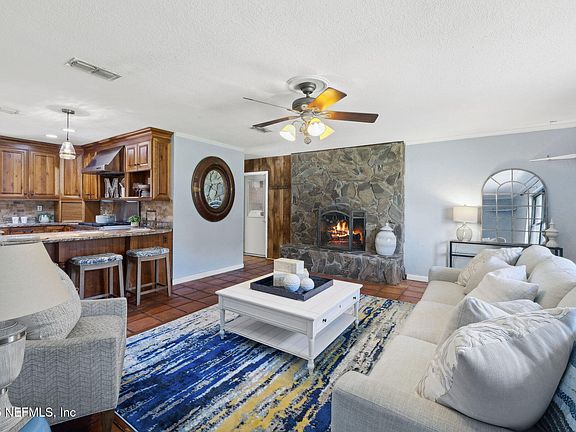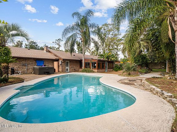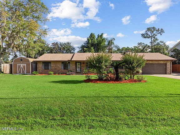 Fabulous, solid built, Fleming Island brick pool home on a DOUBLE LOT is now availale. Roof and HVAC only two years new. NO HOA or CDD fees. Once owned by a famous rock star, you will love the location, pool, waterfall and fishpond. This home offers 3 bedrooms, 2 full baths with one outfitted for handicap access. City water and city sewer. The beautifully renovated kitchen gleams hickory flooring, ample cherry cabinets, unique granite countertops, stainless steel appliances, professional grade gas stove and breakfast bar. Tankless water heater. Electric car charger. The large sunroom leads to the fenced backyard with pool, waterfall and fish pond. This property also has TWO insulated/air cooled sheds (a workshop or he shed and a she shed!) Beautiful biking/walking trails across the road with a boat ramp to the beautiful St. Johns River1 mile awayr. Close to dining, shopping and entertainment. This one will not last long.