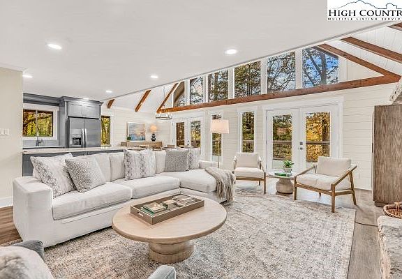 Fully renovated and meticulously updated, this refined mountain residence offers a seamless blend of modern design and everyday comfort. The expansive interior showcases vaulted ceilings, large windows, and a thoughtfully reimagined open layout that maximizes natural light and flow. The kitchen and baths feature quartz countertops, custom cabinetry, and new stainless steel appliances. The lowest level features two bedrooms with two baths, and a nice living space (noted as a bedroom). The top floor features a private enclosed sleeping loft with it's own private bath. Enhanced with three new heating and air conditioning systems, new flooring, including simulated hardwood, tile, and carpet, new light fixtures, and a new water heater, the home is equipped for modern living. A sealed crawl space with dehumidifier contributes to year-round energy efficiency. Set on a private, wooded lot accented by natural boulders, the residence offers a tranquil setting and amazing outdoor living space across two expansive decks, ideal for entertaining or enjoying the crisp mountain air. GGCC membership is available at an additional cost, please inquire about details, requirements and availability. GGCC offers, to its members, lake amenities, indoor/outdoor tennis and pickleball, two golf courses, croquet, a fitness center, multiple dining options, hiking trails, recreation center and more. Agent notes: There is a discrepancy in square footage, recent permitted addition has not been updated on tax record (example: tax states lower level 784 vs. actual of 1,026 square feet, base 784 vs. actual of 800 square feet and upper/loft 240 vs. actual 335 square feet). Additionally, the 335-square-foot loft area with full bath is not fully calculated in total heated square footage due to ceiling height. Acreage pulled from tax records no current survey.