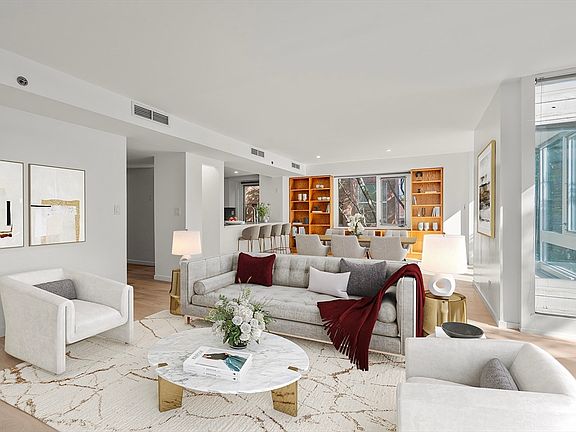 CHARLES SQUARE RESIDENCES | NO BROKER FEE -- Welcome to an exquisitely renovated haven in Harvard Square, offering seasonal views of the Charles River and JFK Park. This sprawling home, renovated in 2024, was thoughtfully designed with an open floor plan that seamlessly integrates style and function. The spacious kitchen is a culinary delight, featuring quartz countertops, stainless steel appliances, and a breakfast bar overlooking the dining area. A tranquil private balcony extends from the living room, idyllic for savoring the scenic surroundings. The primary bedroom serves as a calm retreat with a modern en-suite bath and a generous walk-in closet. The second bedroom is equally inviting, with custom-built-in bookcases. Enjoy the comforts of in-unit laundry, deeded garage parking, and private storage. This coveted building offers 24-hour concierge, an elevator, and beautifully maintained common areas, all nestled moments from vibrant shops, cafes, theaters, and Harvard University.