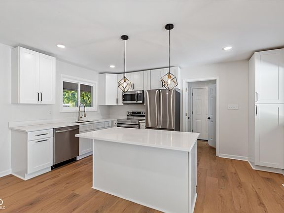Nestled at 975 Burbank RD, Indianapolis, IN, this single-family residence offers an attractive property in a desirable location. Imagine preparing meals and entertaining in the large kitchen, which is anchored by a substantial kitchen island and adorned with stylish shaker cabinets. The open floor plan allows for ease of movement and a natural gathering space for residents and visitors alike. The living room, complete with a fireplace, provides a cozy and inviting atmosphere for relaxing evenings. The residence includes a sunroom, offering a tranquil space to enjoy the changing seasons. The convenience of a laundry room adds to the home's functionality. The primary bedroom provides a private ensuite bathroom. With 1604 square feet of living area on an almost half an acre lot, this residence provides a wonderful opportunity to embrace comfortable living.