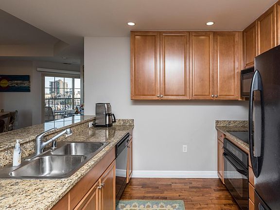 Panoramic views of both the downtown skyline and the mountains. Open floor plan, light and bright, 2 large private patios unique to this property. Updated throughout with hardwood and tile floors, new paint, window coverings, custom cabinets with granite countertops. Large master bedroom with walk in closet, large master bathroom and private patio. All appliances including washer and dryer. Lots of storage. 2 deeded parking spots located next to one another including a large storage locker. First class amenities with 24 hour security, Concierge service 7 days a week, secure elevators, on-site HOA, community pool, hot tub, garden and patio with views of the entire city and front range. Enjoy the retail storefronts within the building or walk to an unlimited amount of restaurants, bars, shops, parks, museums, etc. Plus much more!!!