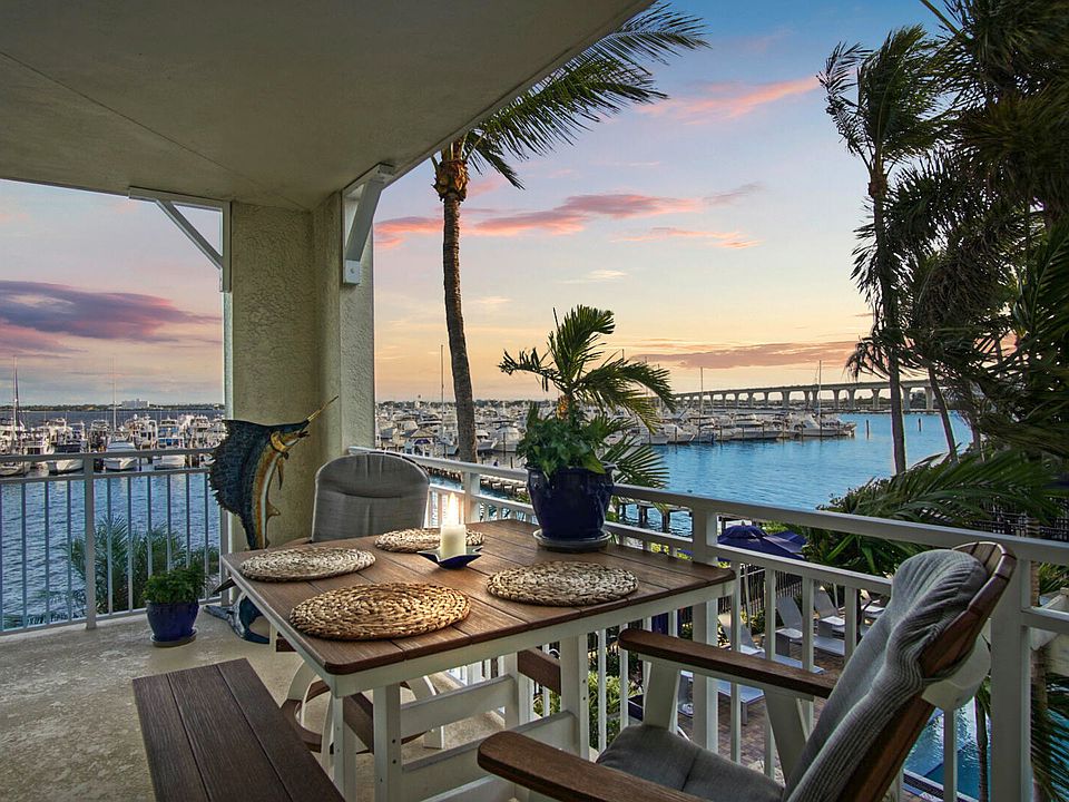 Fantastic opportunity for this meticulously upgraded 3-bedroom corner-unit condo offers panoramic views of the St. Lucie River & marina. The spacious corner balcony provides two stunning perspectives one of the serene water and marina, the other of the sparkling pool. Move in ready with a new metal roof, impact windows, all-new GE Cafe appliances, high-end blinds, new kitchen sink and disposal, new stackable washer and dryer, new tile, brand-new air conditioning system & two covered, dedicated parking spaces. The condo has direct access to the clubhouse just next door and resort-style amenities that include two heated pools, a fitness center with steam rooms and saunas, business center, cabana, BBQ grills, bike storage, and an on-site restaurant. Marina can accommodate up to a 100'' vesse . The Harborage Yacht Club has a $10,000 one time membership fee at closing that is refundable at sale of property. Don't miss this slice of paradise!