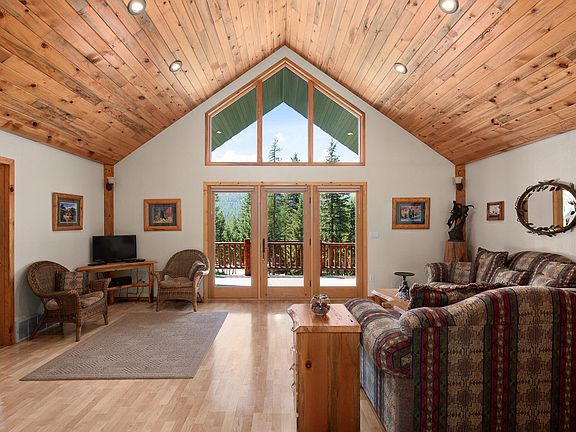Remarks: Beautifully crafted log sided home boasts peace, gated, end of asphalt D/W where Quiet is an understatement. Picture sitting on expansive deck watching Deer live in your yard! Numerous birds & wildlife frequent backdrop of thickly wooded to parked out, fenced 5 acres. You will fall in love with great room space, charm, stunning wood vault & fabulous kitchen features new appliances & fixtures, large walk-in pantry & high bar open to entertaining. Totally separate Master Suite w/walk-in closet, double sinks, door to deck. Impeccable home will not disappoint, freshly stained exterior, wood trim, fabulous floors & doors, NEW: HVAC, central A/C, blinds, carpet & fixtures. Walk out lower boasts river rock wall & warmth of wood stove, attached double garage+heated 30X32 Shop, just 15 min to town!