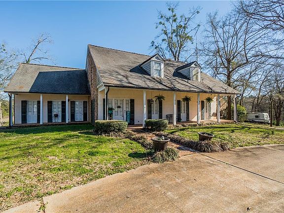 This Country French custom home sits on 65 acres. For the avid hunter, there's plenty of deer right out your back door. A crepe myrtle lined drive delivers you to the front porch of the main house. Step through the french doors into a large entry hall with solid wood floors and wainscoting. To the right is the large owner's suite with lots of closet space, a jacuzzi tub and separate shower. Across the rear of the house is a kitchen/living combo. A great room with vaulted ceilings and hand-hewn cypress beams and a massive wood-burning fireplace. Off the kitchen is a utility room with a pullout table for folding clothes and a built-in desk. The mudroom is a full bath with floor to ceiling tile and floor drain for showering and dog washing. Upstairs are two massive bedrooms with a Hollywood bath and a bonus room/Gameroom. The property also has a 2 bedroom, 2 bath Guesthouse with a fireplace, 2 deepwater wells, an artisan well, an equipment shed, and another guest house.