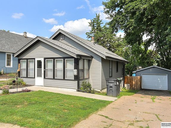 Prime location! Charming ranch nestled between Dundee and Elmwood/Aksarben areas. Main floor is turnkey! Good sized bedrooms are connected by updated Jack & Jill style bathroom. Enclosed front patio perfect for enjoying warm or cold weather. New windows throughout, new furnace/HVAC 2022 and a 4 yr old roof. Small pantry/storage space behind kitchen. Unfinished basement has great potential with equal room to main floor. Fully fenced backyard and large detached single car garage. This is a perfect fit for first time homebuyers or investors.