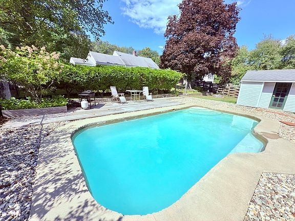 Welcome to this Inviting Home! Desirable One Floor Living with 8 Rooms, 3 Bedrooms & 2 Full Bathrooms! Hardwood Flooring in all 3 Bedrooms, Hallway, Living Room, Family Room & Dining Room. The Living Room Offers a Sun Filled Space for Both Relaxation & Entertainment while The Family Room Boasts a Fireplace Insert that Serves as a Warm Focal Point. The Tiled Kitchen Complete with Appliances & Skylight that Infuses the Room with Abundant Natural Light. The Corian Countertops Provide a Durable & Stylish Surface for Culinary Endeavors. The Main Bedroom, Complete with its Own Bathroom & Sitting Room Offers a Private & Comfortable Retreat. Both Bathrooms Feature Tile Flooring & Tile Accents in the Showers. 1st FL Laundry & Economical Gas Heating! Beyond the Home's Interior, the Property Offers a Private Pool that Provides a Refreshing Escape that is Perfectly Suited for Entertaining or Unwinding.The Expansive Backyard Offers an Oversized area, While the Woods Provides a Tranquil Backdrop.