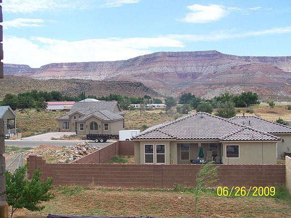 Our custom designed home sits in a quite little southern utah town. We live in a great neighborhood. A job transfer up north force's us to sell/trade. Split bedroom floor plan with two laundry rooms (set for gas or electric) and plumbed for kitchenette or bar in basement. There are two covered patios with doors from the master bedroom and kitchen upstairs. Custom Alder wood cabinets throughout. All case and base in natural knotty pine. Custom Pine railing inside and out. Unobstructed views of Smith's Mesa. Custom rock fireplace in living room. All of the main floor is complete. There are two bedrooms (one is a master), two baths, living room, laundry room and kitchen. Downstairs all rooms are framed. One very large bedroom is done except for the case and base and flooring. Second bedroom has been drywalled only. The third bedroom is only framed. And the living room is framed. Laundry room is framed and plumbed for a watersoftner and wash tub. Ready for a washer and dryer. There is no flooring downstairs at all. This would give a buyer a chance to make it their own style. There is an attached 2 car garage. RV parking with cleanout. Looking to trade in Utah County or nearby cities. Willing to trade for same and less value. We want to down size. Thanks for spending the time looking. Neighborhood Description Very nice neighbors.