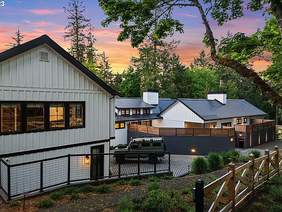 Custom designed and built in 2021, this 2.15-acre property is an ideal combination of casual elegance and whimsical dreams come true. Complete with an epic treehouse built by Portland Treehouse Co., this home was built by R&H Construction. Incredible layout for entertaining with multiple outdoor spaces overlooking Tryon Creek State Park. Designer finishes and deluxe features with single-floor living in the main house. Attached guest suite ready for a kitchenette with separate access. Fantastic barn with main floor car collector's garage and separate shop with second-floor bonus room featuring fireman's pole access to the ground floor. Thoughtfully landscaped low-maintenance grounds planted with a focus on water conservation with access to the 645-acre state park. Gated entry with inner privacy wall.