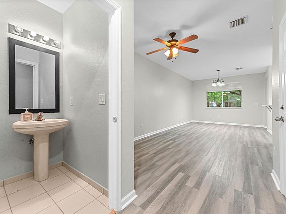 Welcome to this move-in-ready corner townhouse boasting an incredible, serene setting directly on the water. This home is highlighted by a beautiful wide-plank gray-toned wood-look laminate flooring that flows seamlessly throughout the entire residence, including all bedrooms. The main living areas are bright, open, and finished in a clean, contemporary color palette, creating a modern and highly inviting atmosphere from the moment you step inside. The layout is designed for comfort and privacy, with all bedrooms being spacious and well-lit, featuring ceiling fans and ample closet space. The Master Suite is a tranquil retreat, offering a large walk-in closet with wire shelving for optimal organization, and a functional ensuite bathroom. The Master Bath features a vanity with dual sinks and a full-size shower with a sliding glass door. The entire home is impeccable and ready for a new owner to enjoy.